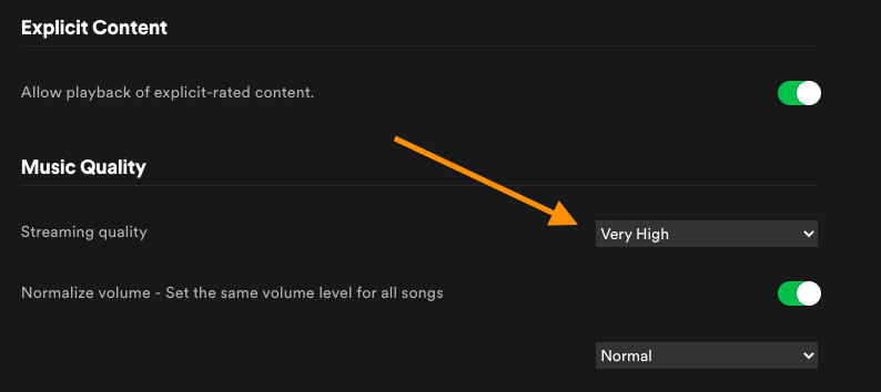 Di Spotify juga terdapat fitur untuk menentukan kualitas musik. Sebagai pecinta musik, tentu kamu ingin kualitas terbaik. Untuk melakukan pengaturan kualitas musik, kamu tinggal masuk ke menu pengaturan di Spotify. Selanjutnya di bagian music quality, kamu bisa tentukan kualitas musik yang akan dipakai. Kualitas tertinggi ada pada very high.