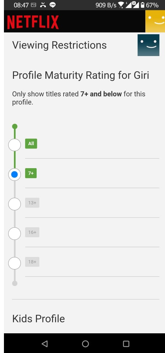 Masih di halaman yang sama, geser menu For Kids hingga tombol berubah menjadi biru (fitur aktif). Jadi, profil Netflix anak hanya akan menyajikan konten yang menurut Netflix paling tepat dan aman untuk ditonton. Di sini fitur kontrol orang tua sudah aktif. Tetapi kalian juga bisa melakukan pengontrolan lebih ketat.
