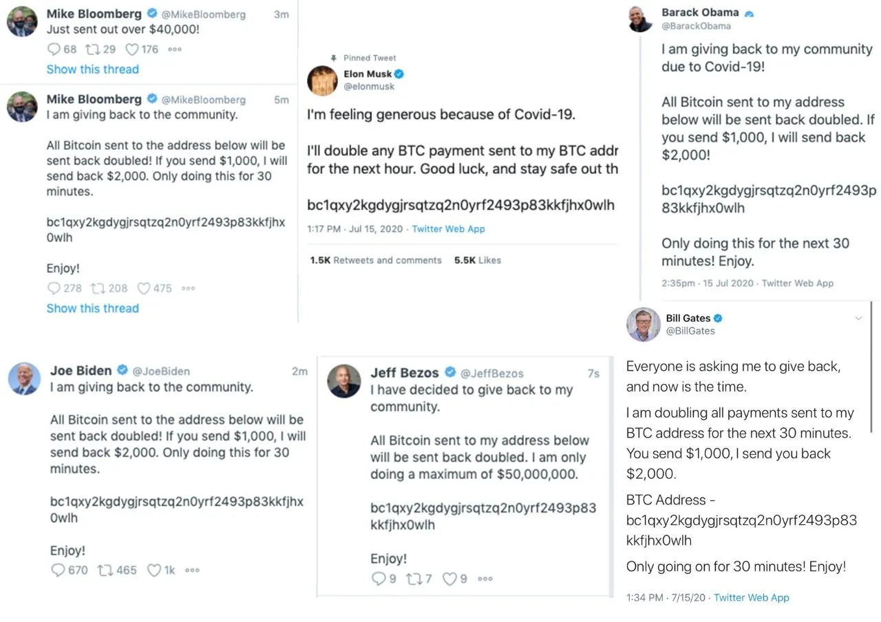 Teknologi.id - Beberapa saat lalu, ramai berita mengenai akun Twitter milik beberapa tokoh terkenal seperti Elon Musk, Bill Gates, Jeff Bezos, hingga Barack Obama yang telah diretas. Peretasan ini diketahui setelah munculnya cuitan dari akun mereka yang isinya kurang lebih sama yaitu agar para pengguna Twitter mengirimkan sejumlah nominal Bitcoin pada tautan tersebut dan berjanji akan mengirimkannya balik hingga dua kali lipat.