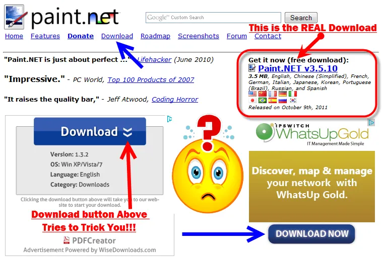 Sebagai panduan umum, mayoritas situs resmi tidak menggunakan tombol download berukuran besar. Contohnya, kalian bisa menghindari tombol ‘Download’ berwarna hijau besar. Walaupun tidak semua tombol download berwarna hijau adalah palsu.