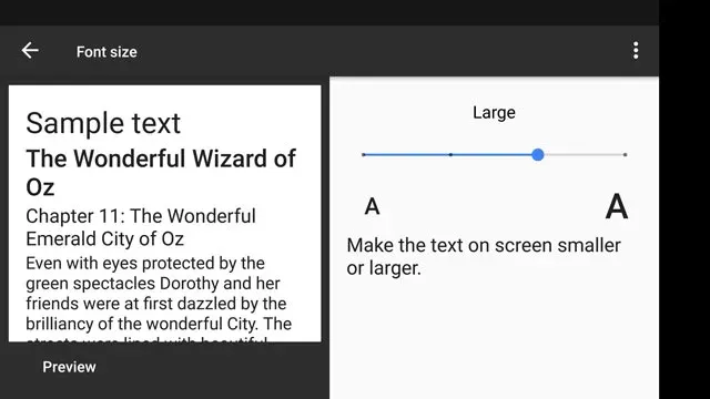 Di atas menu geser ini akan ada contoh teks yang akan ikut berubah sesuai ukuran huruf atau teks. Jadi, kalian bisa dengan mudah mempertimbangkan ukuran yang paling pas dan nyaman untuk mata.