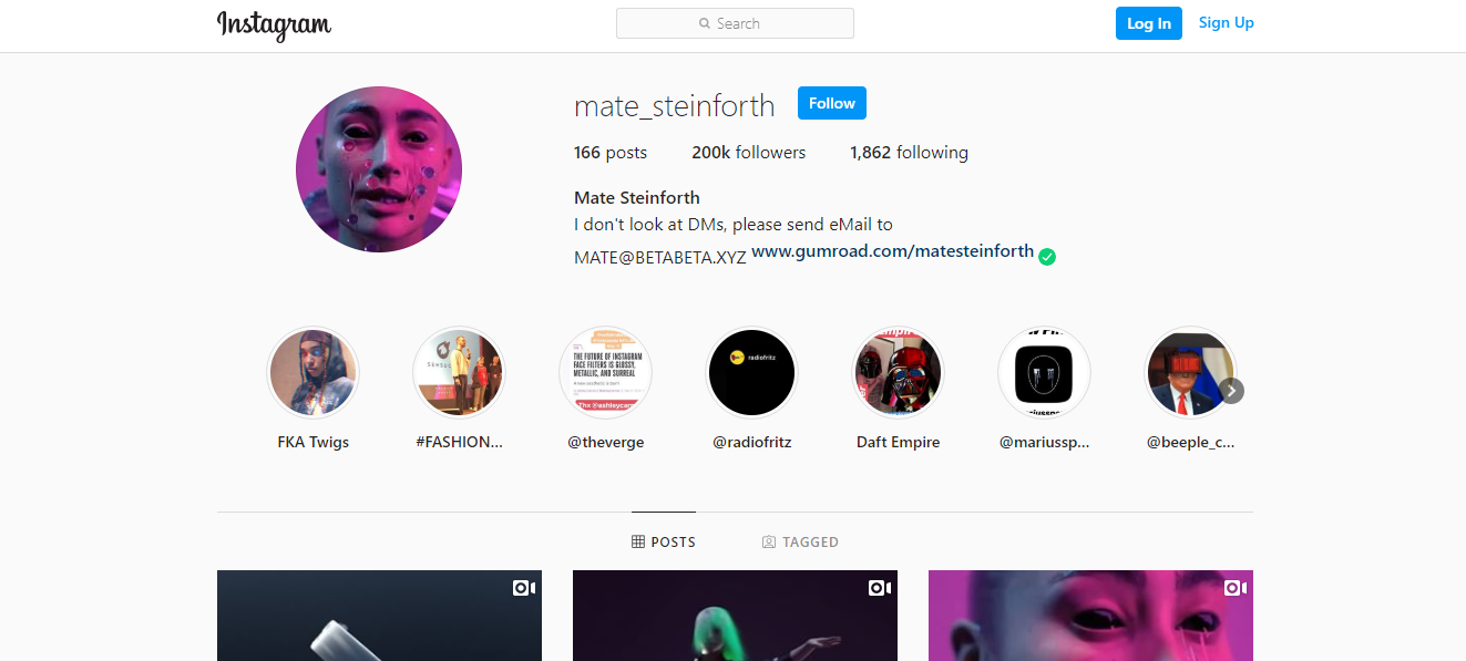 Mate Steinforth adalah seorang kreator face filter. Mate punya ciri khas surealisme. Jadi semua filter yang dia buat pasti terlihat menyeramkan. Buat kalian-kalian pecinta horor, tentu filter-filter dari Mate ini jangan sampai terlewatkan.