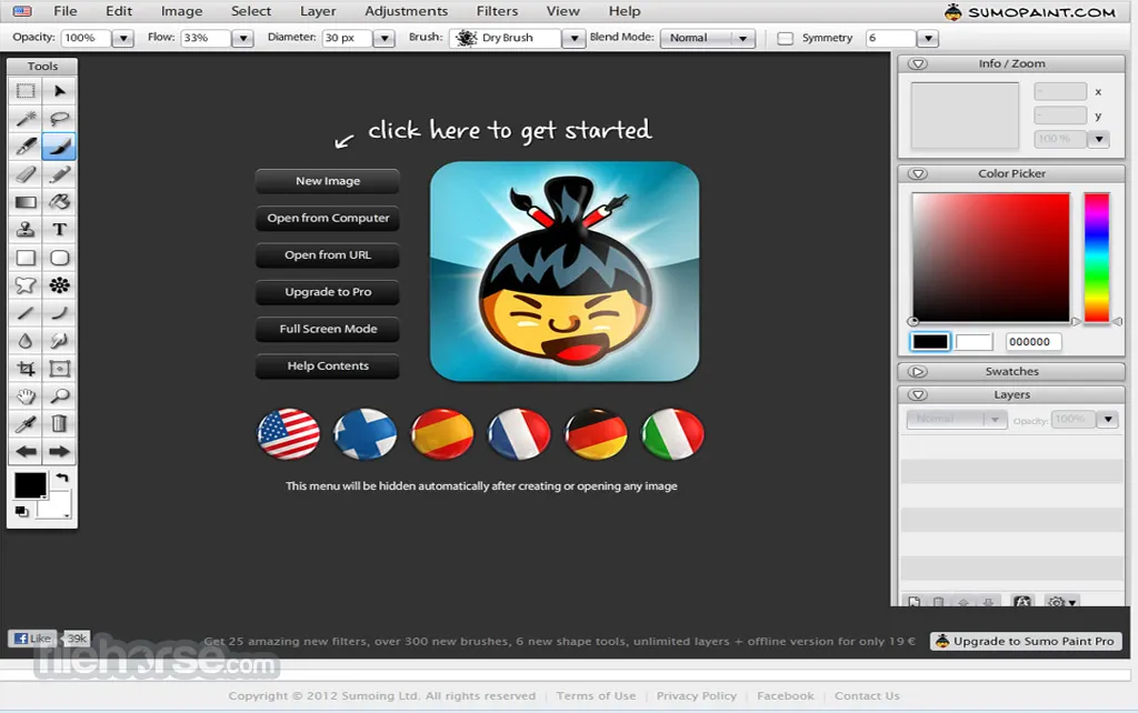 Selain memiliki versi basic yang gratis, Sumopaint juga menawarkan versi premium yang berbayar $4 dollar setiap bulannya. Cukup terjangkau bukan?
