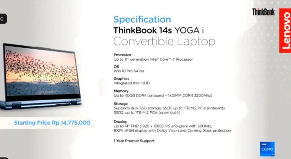 - ThinkBook 14s Yoga Gen 2 i sudah tersedia mulai hari ini dan harga dimulai dari Rp14.775.000