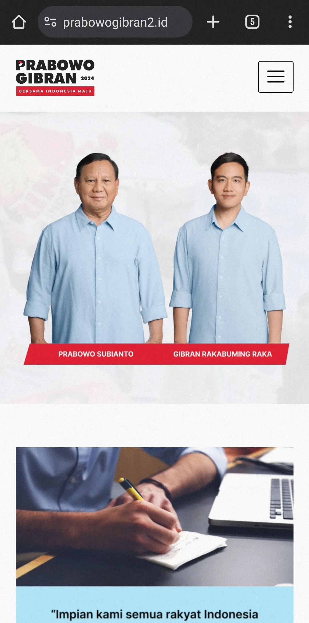 Situs web Prabowo-Gibran juga sama halnya seperti situs AMIN, di mana layout-nya akan menyesuaikan perangkat yang digunakan pengunjung saat mengunjungi situs mereka.