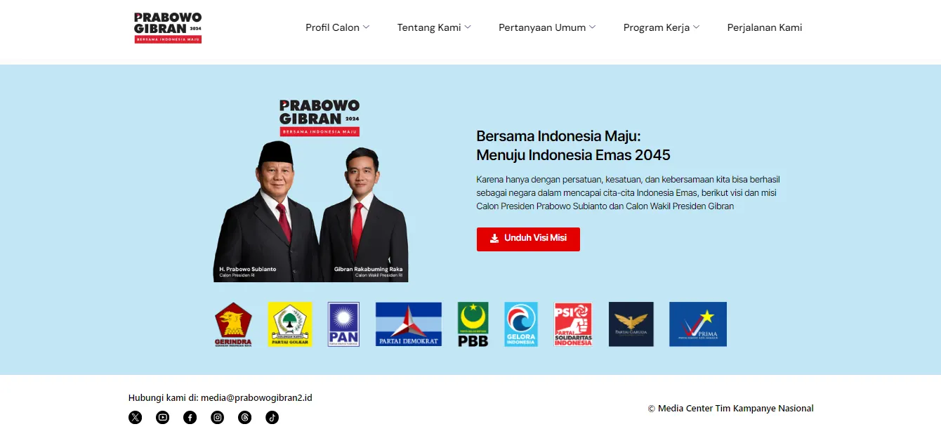 Kemudian, di bagian akhir, pengunjung akan disajikan visi dan misi mereka secara singkat. Apabila ingin melihat visi dan misi secara lengkap, situs ini menyediakan tombol yang dapat mengunduh visi misi mereka. Selain itu, ditampilkan pula logo sembilan partai politik pengusung.