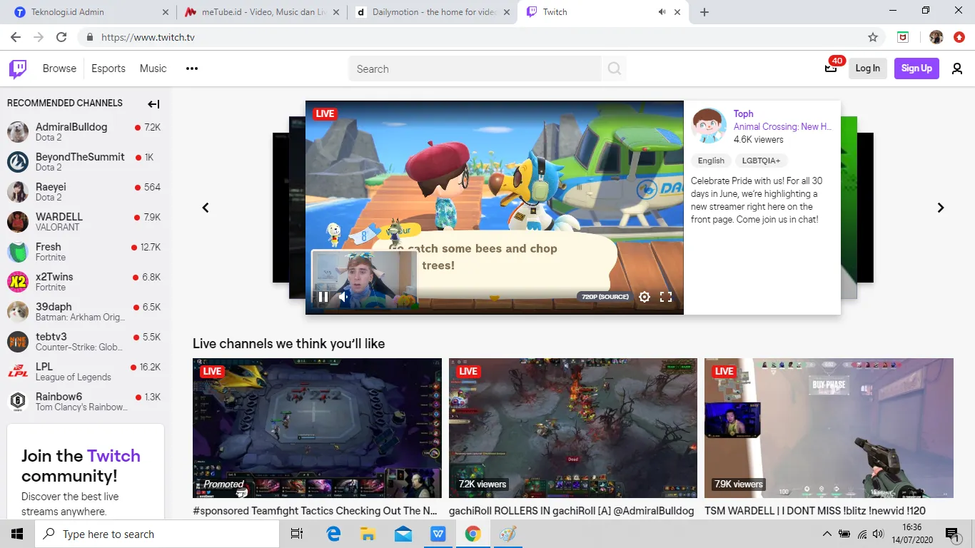 Situs streaming video yang satu ini lebih dikhususkan bagi kalian, para pecinta game, karena berisikan berbagai macam video seperti live streaming bermain game dan juga video live streaming untuk membahas suatu game tertentu. Di situs ini kalian juga akan mendapatkan update mengenai perkembangan dunia game. Oiya, kalian bisa melakukan chatting dengan para gamer lain yang menggunakan Twitch untuk mencari referensi loh. Ingin mengunggah video kalian saat beraksi di game yang sedang hits? Tenang, kalian juga bisa mengunggah video kalian sendiri di Twitch kok.