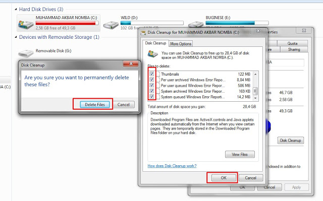 Kalian bisa melakukannya dengan cara masuk ke partisi hard disk yang ingin dibersihkan, kemudian klik kanan, lalu pilih properties dan kemudian tekan tombol Disk Cleanup. Setelah menakan tombol Disk Cleanup, kalian bisa cek memori atau ruang yang ada pada partisi hard disk tersebut. Selain itu, kalian juga bisa menghapus file-file yang ada di Recycle Bin. Kalian bisa menghapus semuanya jika dirasa file-file tersebut sudah tidak dibutuhkan, dengan demikian bisa memberikan ruang yang lebih banyak untuk laptop.