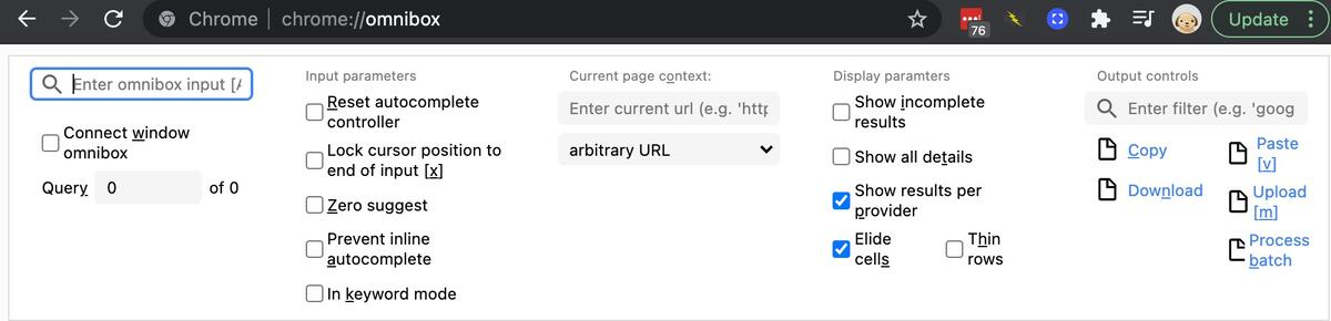 browser Chromium lainnya. Misalnya, untuk Microsoft Edge ketik edge://omnibox/ dan untuk Brave gunakan