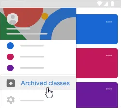 - Di sebelah kiri, ketuk Menu lalu scroll ke bawah untuk mengklik Kelas yang diarsipkan