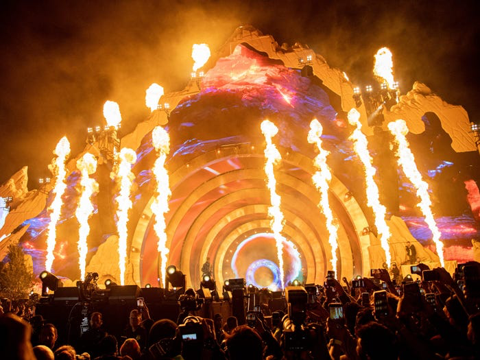 Travis Scott dilaporkan melihat ada ambulans yang masuk di tengah kerumunan penonton pukul 21.30 waktu setempat. "Ada ambulans di tengah penonton, wah, wah, wah," ujar Travis Scott yang tampaknya mencoba menenangkan keributan. Selama beberapa detik musik sempat berhenti. Travis Scott lalu melihat ke arah penonton dan bertanya apa yang terjadi. Penyelenggara konser, Live Nation, kemudian menghentikan pertunjukan kira-kira 30 menit lebih awal dari yang direncanakan, sekitar pukul 22.10 waktu setempat. Namun demikian, tidak semua warganet memercayai teori-teori konspirasi yang beredar.