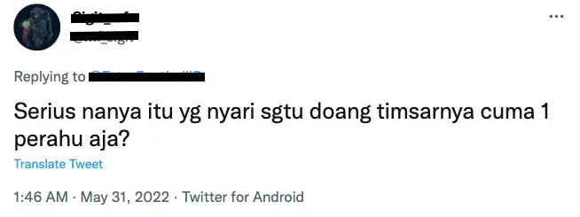 "Serius nanya itu yg nyari sgtu doang timsarnya cuma 1 perahu aja?" balas pengguna Twitter lainnya.
