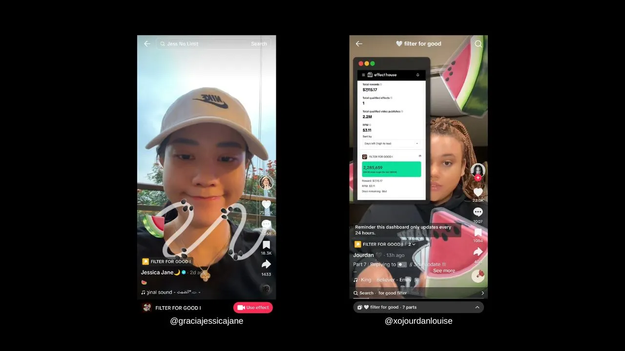 Simbol semangka ini seringkali digunakan dalam caption, komentar, atau dijadikan filter augmented reality (AR) dalam postingan mereka. Sebagai contoh, seniman Jourdan Louise telah menciptakan "Filter for Good I" yang menampilkan gambar semangka dengan memanfaatkan teknologi AR. Filter ini telah tersebar di lebih dari 4 juta postingan di TikTok dan berhasil mengumpulkan dana senilai US$ 7.100 atau setara dengan Rp 111 jutaan.