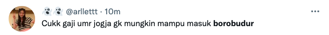 "Cukk gaji umr jogja gk mungkin mampu masuk borobudur," cuit @arllettt.