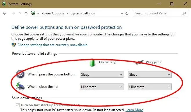 - Buka “Control Panel” di laptopmu dan ketik “change what the power buttons do” pada kolom pencarian;